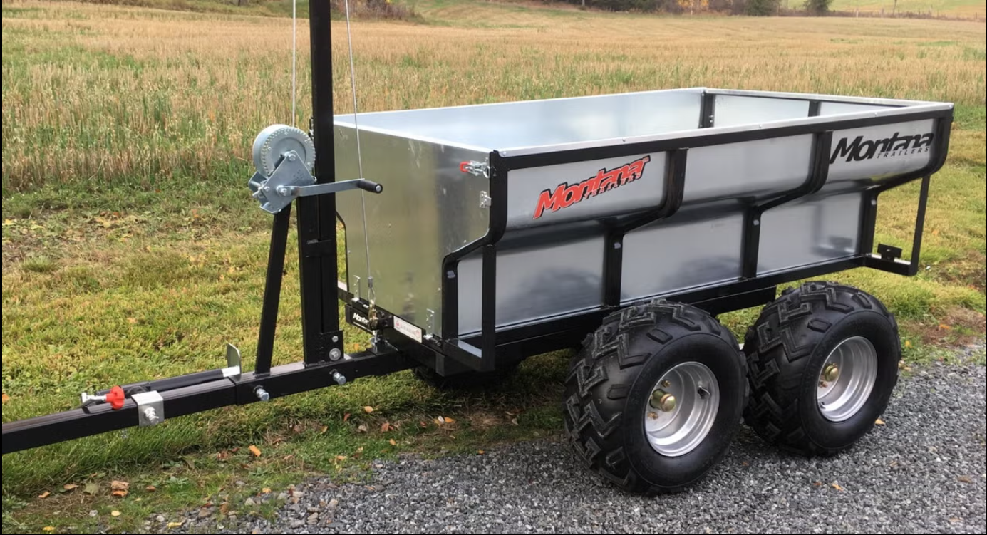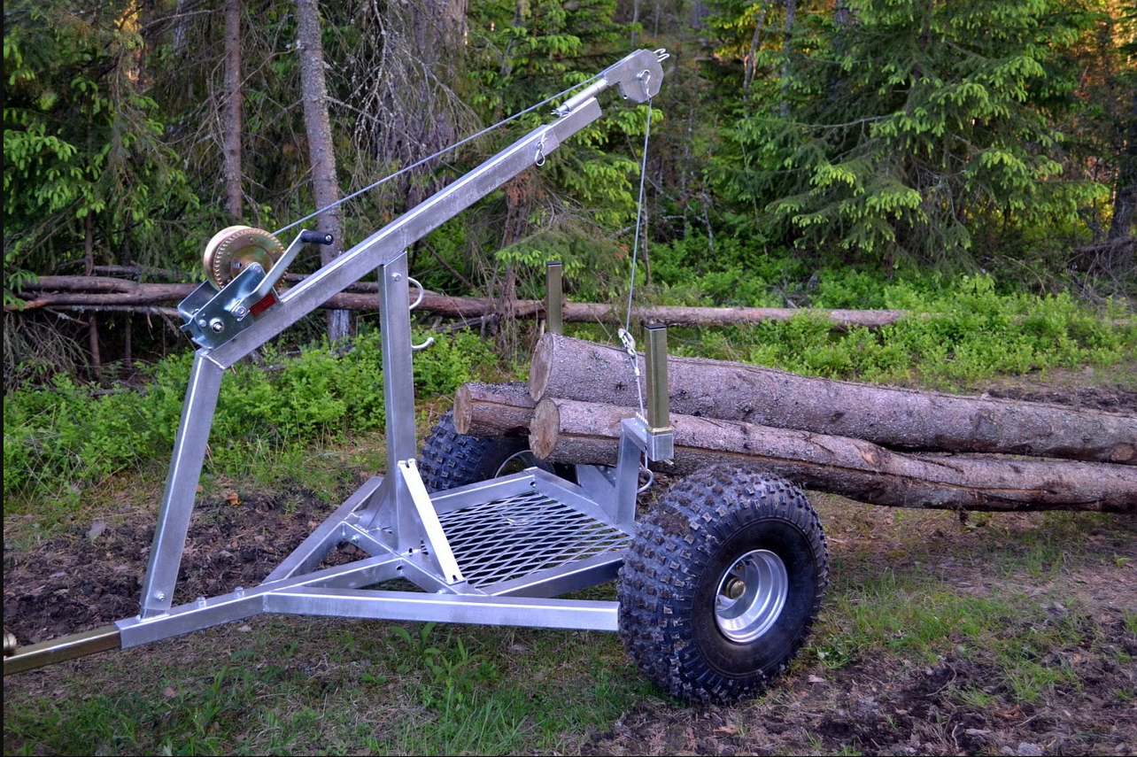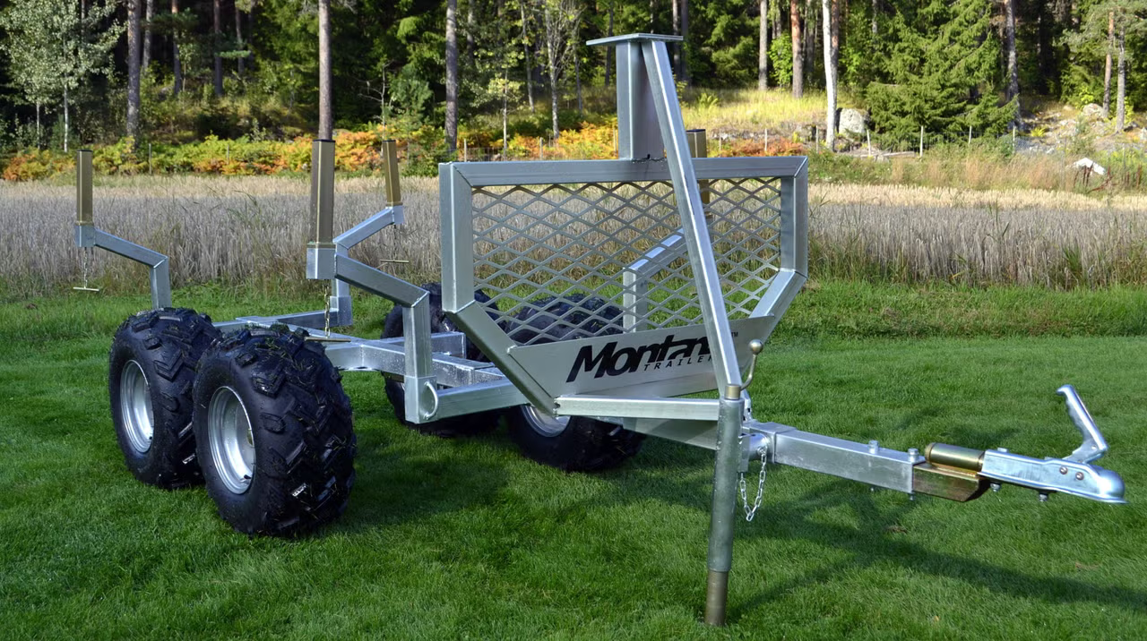 Robust og galvanisert lunnehenger fra Montana, perfekt for utdraging av lange stokker og trær med ATV eller minitraktor.